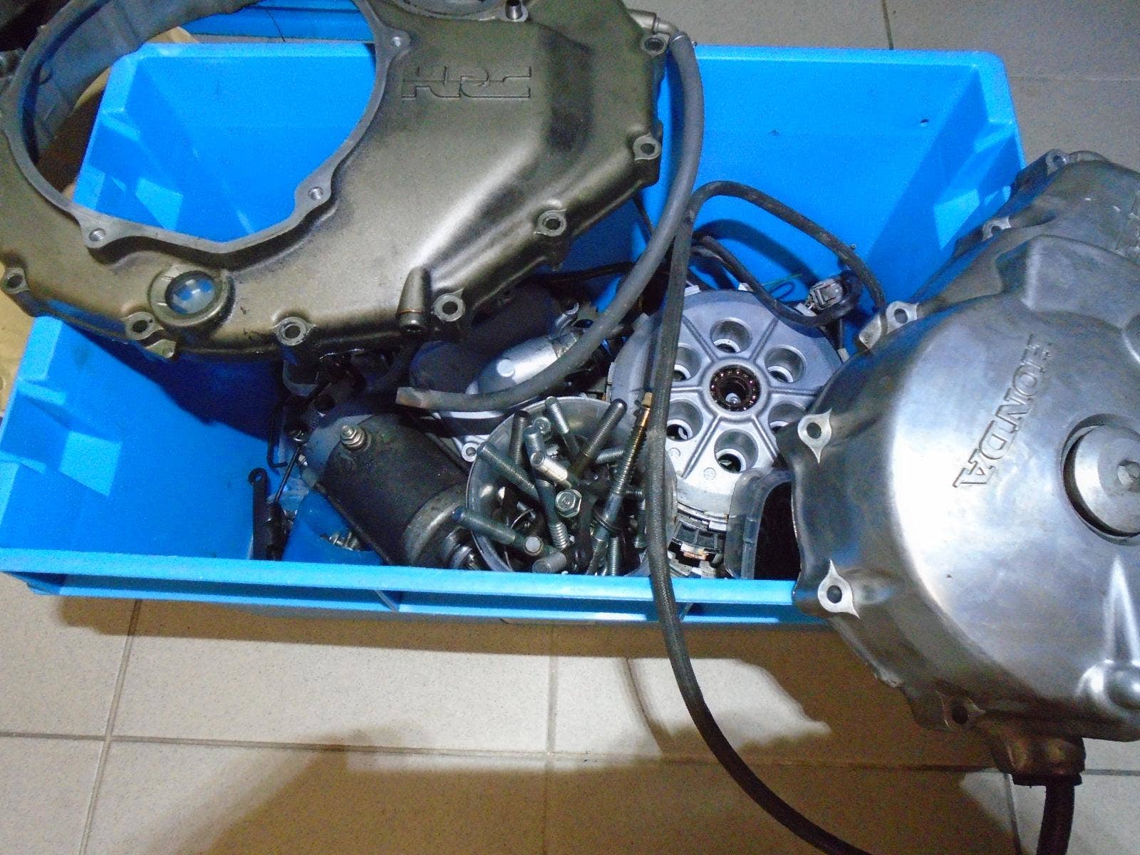 Poškozená klika motoru, frémy, hlavy, převodovka atd. v pořádku.